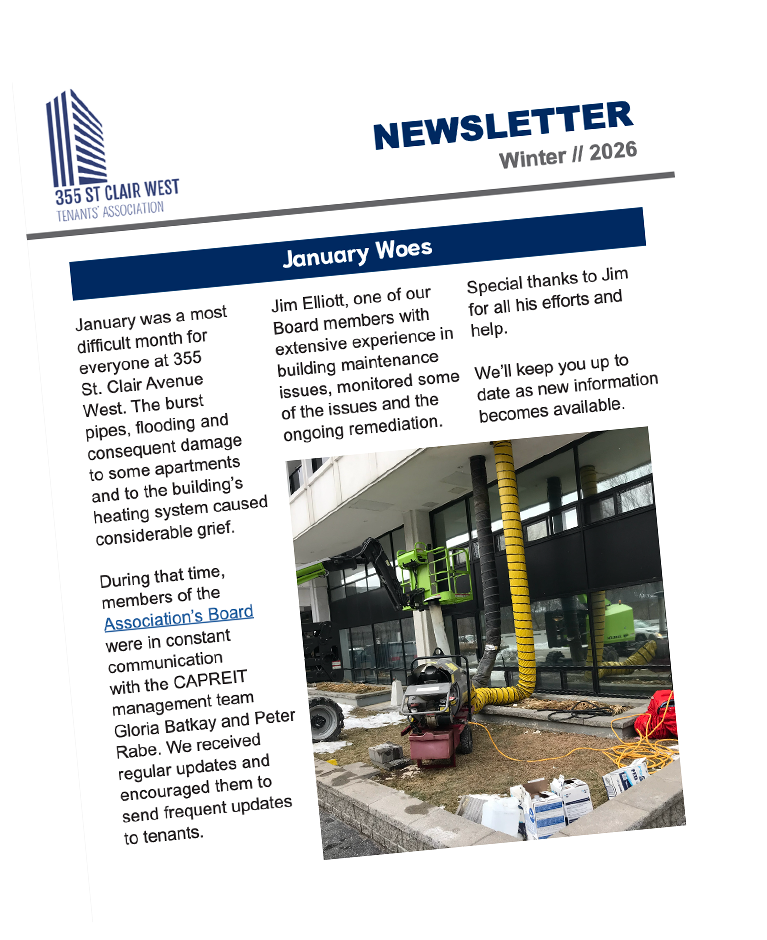 We are the Tenants’ Association of 355 St Clair West, comprised of tenants who live at The Thomas (formerly Tower Hill West) and pay the annual membership fee.